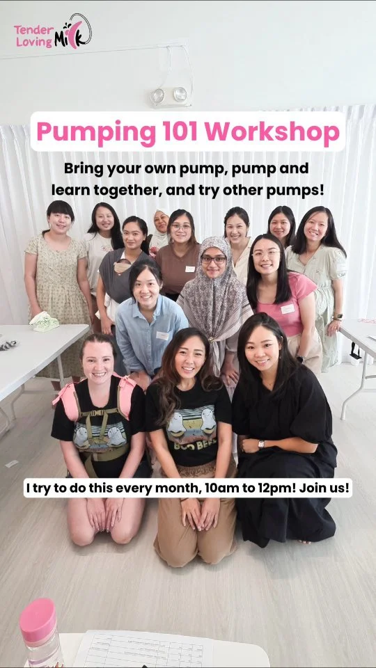 Singapore’s first pumping workshop to learn all about pumping and allows mothers to bring their own pumps to pump together in this workshop. Get your flange size assessed as well as your pumping modes and settings!